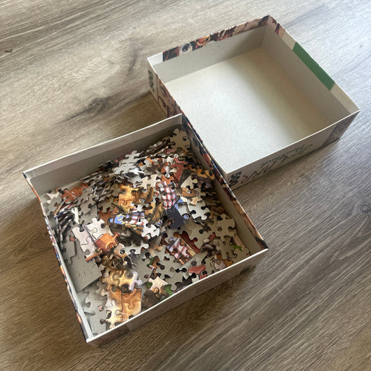 These puzzles are USED, so while we've kept them tidy, a few missing pieces or other wear might pop up!